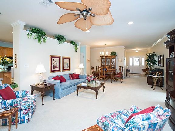 Gated 55+ Community. One of the largest Floor plans in Phase 11. This beautiful home was a former model and has many extra features. Crown moulding thru out most of the home, Large screened in porch, beautiful maple kitchen cabinets with solid surface counter top. Lots of storage space one of the bedrooms even have built in cabinets in the closet for all of your craft/sewing needs. The floor plan is open and the living area offers large rooms. The home is situated on a large corner lot with extra landscaping. Live Oak Village has a club house, indoor/outdoor pools, workout room. The monthly Fee includes yard mowing!