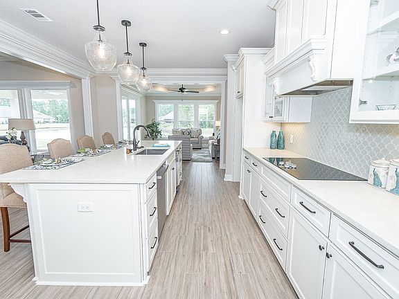 New construction in gated Fiddler's Cove! This beautiful 4-bedroom, 3-bath home is stunning. The kitchen boasts 3cm quartz counter tops, tiled backsplash, stainless steel appliances, custom wood cabinets, and an oversized island. The living areas all have crown molding and are tiled. The master suite has a tiled walk-in shower, large tub, dual vanities, and a large walk-in closet with custom built wood shelves. The covered back porch offers great views. The 3-car garage is finished in T1-11 wood paneling and has flooring above in the attic for ample storage. The HOA dues include lawn care, irrigation, and access to the pool and fitness center.Located in the community of Fiddler's Cove, this home has easy access to I-95 and Naval Submarine Base Kings Bay.