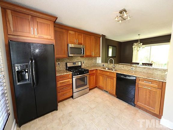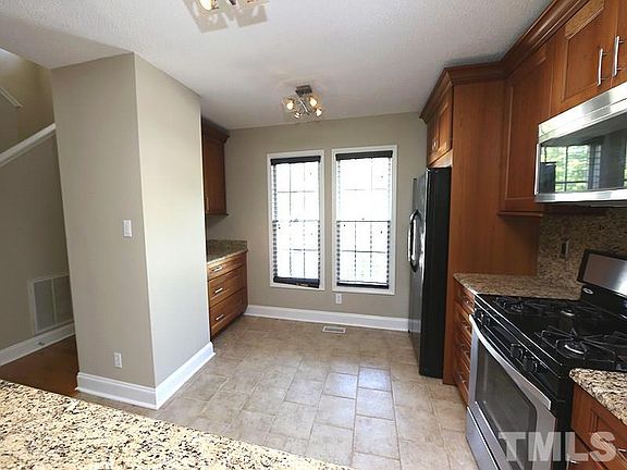 Highly desirable single family home in Cary for under $250,000! Great schools plus walk to nearby park, greenway trails and neighborhood pool & playground. So many updates including remodeled kitchen w/ cherry cabinets, granite & gas range, coffee bar area. Solid hardwood floors, updated 1/2 bath, updated master bath, new carpet. Large laundry room & pantry. HVAC new 2016, WH 2014. Garage includes workshop area. Flat, fenced yard with large patio & privacy. This home is move in ready- welcome home!