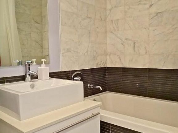 NO FEE! WEEKEND SHOWINGS ONLY. Great value for this 1br one bath apartment with free indoor parking for 6 months! Graham L stop (5 min walk.) Can come furnished or not, pick and choose what stays and what goes. We just painted everything white and installed a brand new 32" tv, led/hd with built in dvd player. This sun drenched apartment offers a fully equipped kitchen with stainless bosch appliances, deep tub/shower for those needing bubble baths, large windows, built in custom shelving and a private balcony overlooking the building's zen garden. The building offers everything one would need. 24hr concierge, heated indoor swimming pool, jacuzzi, sauna, fully equipped gym, billiard lounge, laundry, your own private storage unit, refrigerated storage room for grocery deliveries, backyard with BBQ area, pet spa and bike storage. All of this is sits just across the street from a beautiful park that has a huge dog run, two play grounds, a track, basketball and tennis courts.......Pets ok!