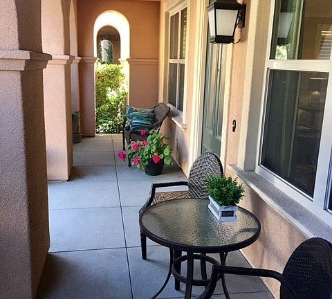 MOVE-IN READY! Rare Stonegate single story private corner unit home is well appointed with an open kitchen and dining area- 2 bedrooms + 1.5 bath in approximately 1129 SF of spacious living. Generously sized great room with recessed lighting, plantation shutters with open concept floor plan optimizes natural light. Luxurious master suite with walk-in closet, dual vanity, walk-in shower with clear glass enclosure is a welcome retreat from your day. Secondary room can be a den/office or a 2nd bedroom. Gourmet kitchen with granite counter tops and stainless steel appliances. Designer selected flooring throughout unit. Interior laundry for double stacked W/D. Single car garage features extra storage space and epoxy coated flooring. Private front porch large enough for outdoor seating. Jeffrey walking Trail is in the Stonegate complex. Stonegate Park - This private neighborhood park includes basketball and tennis courts, swimming pools, spa, playground areas, grass lawn, and BBQ areas.