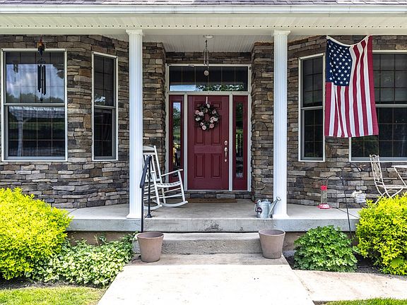 Introducing a stunning ranch home set on over 150 acres of picturesque land. This exceptional property boasts multiple garages, including an attached three-car garage and a detached two-car garage with an unfinished second floor. A large deck provides breathtaking views of this beautiful private landscape, teeming with wildlife such as turkey and deer. The expansive basement offers ample potential for additional living space, ideal for an in-law suite or a recreational area. It also features a pole barn with its own private driveway. Explore expansive trails ideal for hunting or hiking. This one-of-a-kind property is a rare opportunity in today's market.