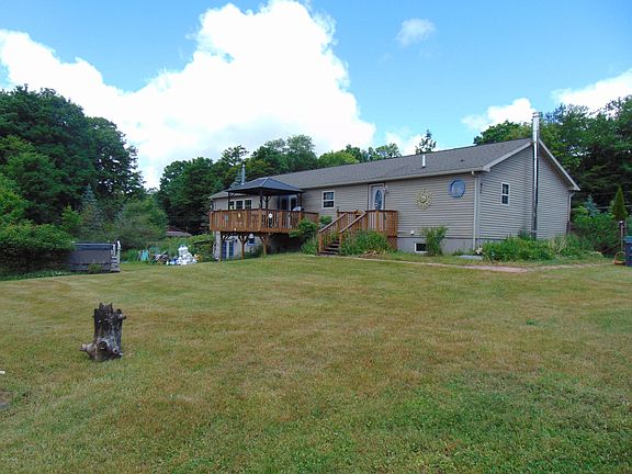 Well maintained ranch not in a community situated on 2 lots totaling 2.51 acres. This 4 bed 3 bath, 3 living rooms, 2 kitchens, and 2 laundry rooms. Jacuzzi tub in the upstairs master bath with separate shower and double sinks. Situated on a corner lot with room for vast gardens, sit in your own gazebo or just relax on the back deck. Minutes form promised land state park and Lake Wallenpaupack and ski resorts all within an hour. This home has multiple sheds and a very large garage for toy storage.