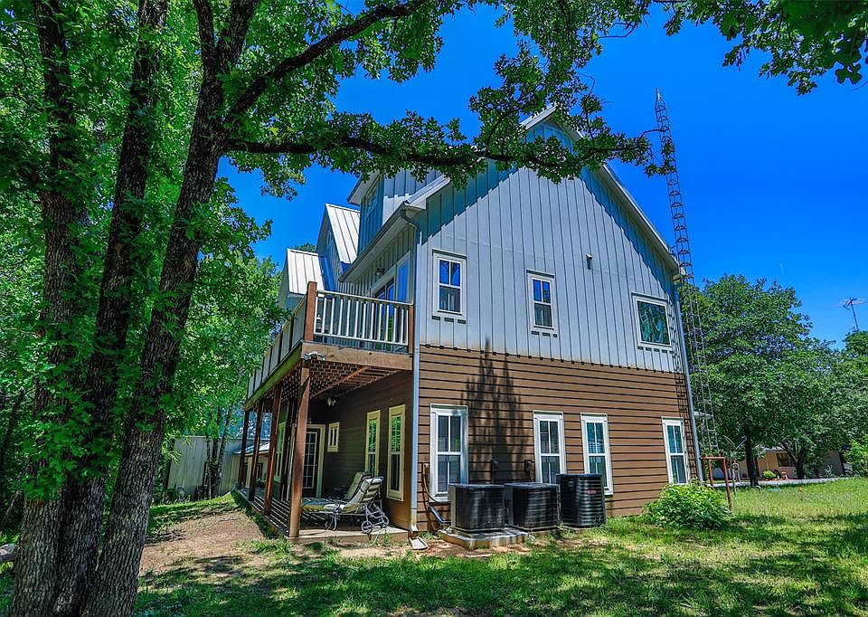 Must see to appreciate this fabulous 3 story 4 bdrm 3.5 bath home in a country setting on 2.745 treed acres with a creek! 3rd floor Media Rm with wet bar and full bath. 2nd floor features kitchen that opens to balcony, liv room with vaulted ceiling, blt ins & gorgeous Austin stone FP, dining area & Mst Suite with balcony. Master Bath offers dual sinks, jetted tub & separate tiled shower with 3 shower heads. 1st floor with 2 bdrms, J&J bath & desks, plus another smaller bdrm & office or mudroom with closet. Other features include intercom, beautiful wood ceilings, covered porches & decks, 3 H&A units, 2 water heaters. *See transaction desk for Seller upgrades.* *Chicken coup will be torn down before closing*