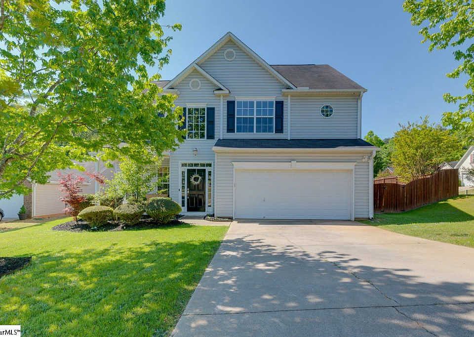 Welcome Home! 100 Merlot Court is a 3 bed/2.5 bath home on a corner, cul-de-sac lot featuring an open floor plan and large, fenced backyard. The bright, two-story foyer has a separate front porch access point. To the left, through the archway is the dining room that leads to the kitchen. Also off the foyer is a powder room for guests. The large kitchen and breakfast area open to the two-story Great Room through a custom archway flanked by two pass throughs with built in shelving. The Great Room boasts two story windows that allow sunlight to stream in as well as a woodburning fireplace for those cozy nights in. This open floor plan allows for maximum entertainment space and provides access to the backyard to bring the outdoors in. Upstairs you will find a spacious landing area that overlooks the Great Room. Off the landing area is the walk-in laundry room, two secondary bedrooms sharing a Jack and Jill bath, and a large Master Suite. The Master Suite boasts a walk-in closet along with double doors leading into the large Master Bath featuring dual sinks, and separate shower and soaking tub. Outdoors you will find a grilling patio and large backyard with privacy fence. Community amenities include common areas, pool, and pond. Located just minutes from Lake Conestee Nature Preserve and Sunset Park and a short drive from shops, restaurants and interstate access, this home has it all-letâs get you moved in just in time for summer!