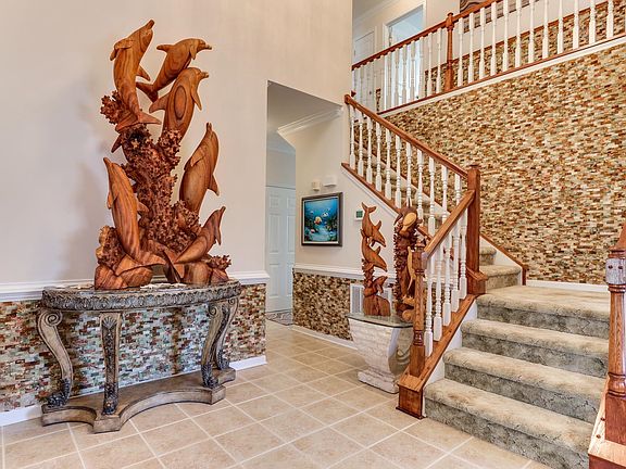 Immaculately maintained home in pool & golf community! Versatile floorplan. Chef's kitchen w oversized center island for extra counter & workspace. Plenty of cabinet & storage space, over cabinet lighting and tile backsplash. Living room open to kitchen, features gas fireplace & built-in fish tank w its own climate controlled tank room. Mstr bedroom has updated ensuite w rare honey pineapple onyx flooring & shower, quartz counter, separate soaking tub and spacious walk in closet. Huge bonus/rec. room. Persian green onyx tile and imported Italian porcelain slab accents t/o home. Breakfast nook opens to screened porch and rear deck/gazebo with trex decking. Award winning lawn! Custom lush landscaping w all sorts of rare foliage. Irrigation system. Ask your agent for a full list of upgrades. Must see!