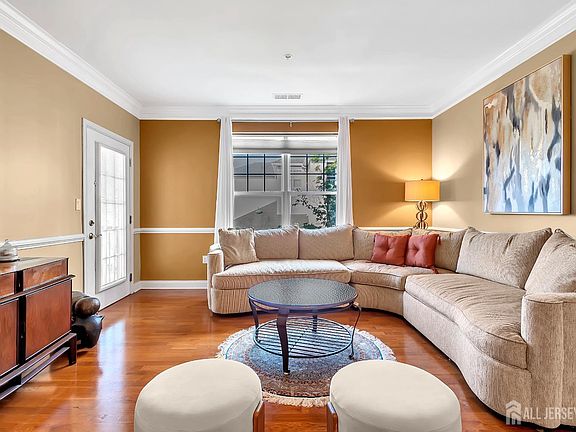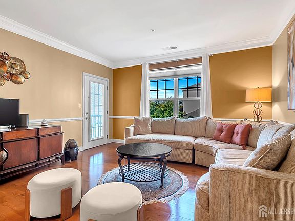 Absolutely move-in ready, this elegant east-facing 2-bedroom, 2-bath condominium offers 1,234 sq.ft. of thoughtfully designed living space in the highly sought-after Highlands at Cranbury BrookPlainsboro's premier 55+ adult community. Enjoy tranquil garden views and abundant natural light throughout. The open-concept Living and Dining Room features gleaming hardwood floors, crown molding, and a chandelier creating a welcoming space for entertaining. The balcony overlooking the garden is a great place for relaxation. The sun-lit master bedroom is a true retreat, complete with crown molding, a walk_In closet, designer carpet and its own chandelier. The semi-upgraded en-suite bath includes a soaking tub, standing shower, and vanity. The second bedroom also boasts a walk_In closet, designer carpet, and picturesque garden views. A spacious hall bath with a standing shower adds convenience, while the updated kitchen impresses with 42-inch cabinetry, granite countertops, stainless steel appliances, a double sink, and a charming serving window that connects seamlessly to the dining area. Stackable laundry is conveniently located in the unit too. With its graceful layout, premium finishes, and unbeatable location, this home is ready to welcome you. Come experience the perfect blend of comfort, style, and community. HOA includes all exterior, snow cleaning, trash & recycling, pool, tennis court and recreation facilities. It also includes water and sewer charges. GAS heating is a PLUS. Close to shopping, banks, parks, restaurants, bus and train to NY, and major highways.