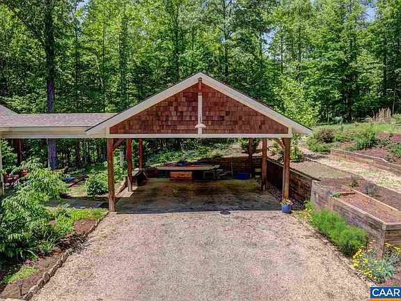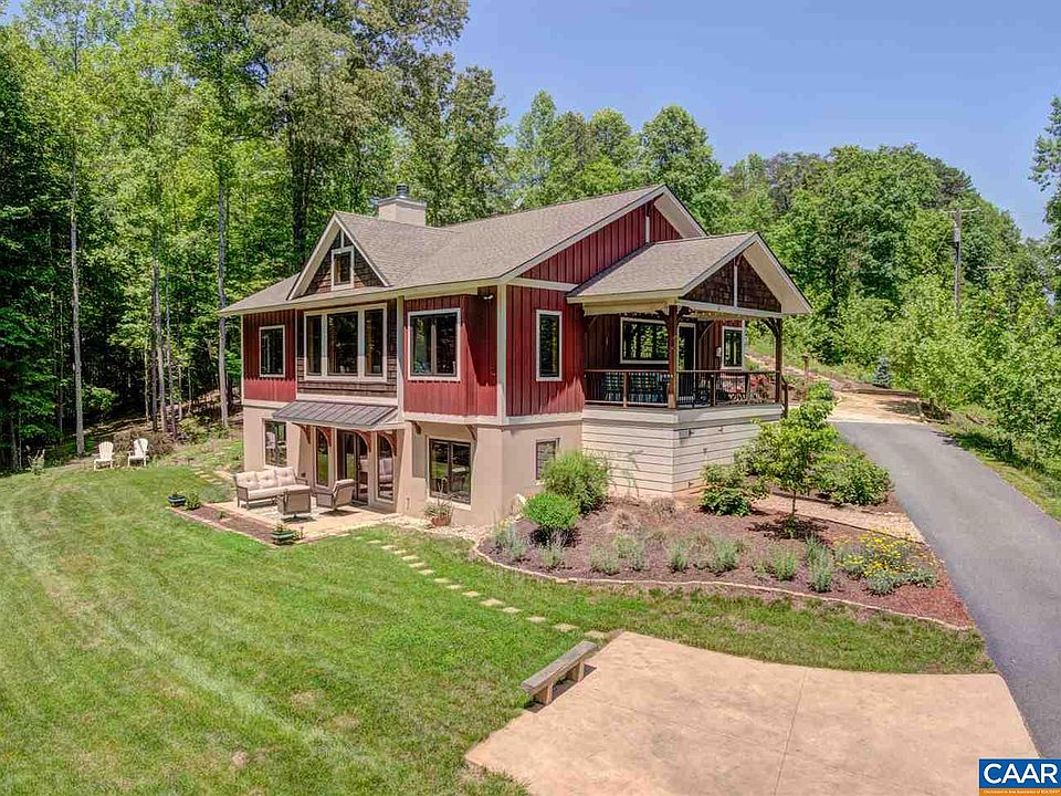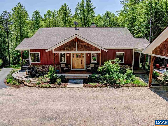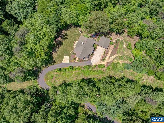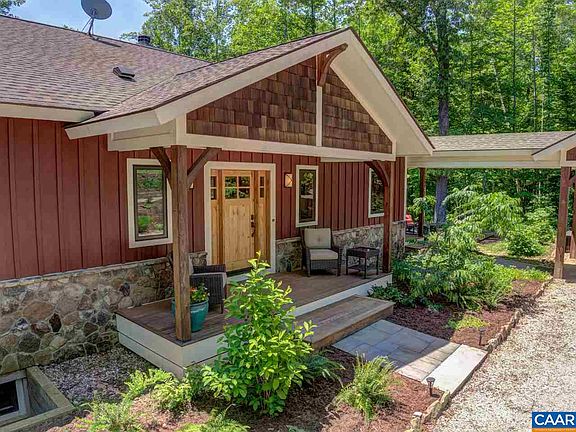 Exceptional home nestled among the trees with babbling creeks on 21 acres. This truly unique western Albemarle home is an oasis to return home to. Split Creek was crafted with high end finishes, sustainable products and energy efficiency to stringent National Green Building Standards while incorporating trees felled on the property to create unique built ins, mantle, staircase, and flooring. STUNNING TimberPeg great room with river stone fireplace is the centerpiece of the home. Cooks kitchen with high end stainless appliances and butcher block island adjoins covered side porch and dining room. 3 large bedrooms including main floor master suite. Many quiet patio and porch spaces surround this home.