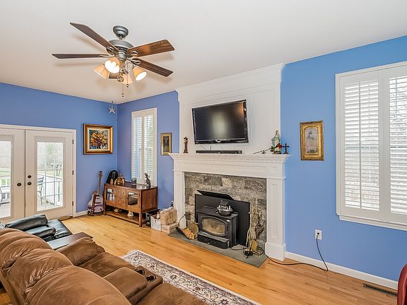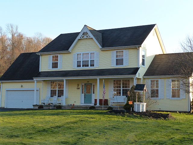 Move Right In~Beautiful 9 Room Colonial situated on 3.2 level Acres close to Roger's Orchard. The private backyard is designed for enjoyment~SW Exposure~In-ground Pool~Cabana House equipped with Kitchenette~Screened Porch~2 Decks~Stone Patio with Fire Pit. Today's Buyer will love the Open Floor Plan accented with 9' Ceilings, Crown Moulding, Wainscote, HW Floors and Walnut Distressed Pergo Floors. The spacious eat-in Kitchen has full view to the backyard and Family Room and presents granite countertops, tumble marble back splash and slider to the 12'x12' Screen Porch. Stylish Plantation Shutters enhance the Family Room along with hardwood floor, custom built-ins, pellet stove, ceiling fan and french doors to the Deck. Formal Dining Room flows off the Kitchen and is trimmed with Crown Moulding, Wainscote and hardwood floor. First Floor Office with double set of french doors and new carpet, can be used as a bedroom with access to the adjacent full bath. The newly installed Walnut Distressed Pergo Floors begin on the main staircase and throughout the 2nd floor. Spacious Master Suite presents walk in closet with custom Built-Ins, Granite Double Vanity and Tiled Shower. Three other bedrooms, hall bath, and a 21'x19' Great Room compete the 2nd floor. Great Room can be used as a Bed Room. The additional 500sf in lower level has a Fitness Room, Den and a large Workshop. Energy Features:Leased Solar Panels, Thermopane windows,Nest Thermostat,Pellet Stove, & Home Wired for Generator.
