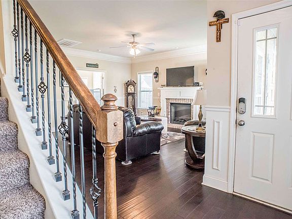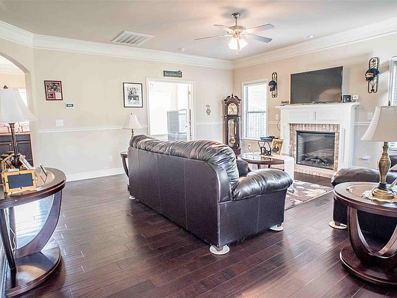 - LIVING ROOM DESC: 9? Ceiling, Fireplace, Crown Mold, Smooth Ceiling, Wood Floor, Vaulted Ceil, Ceiling Fan