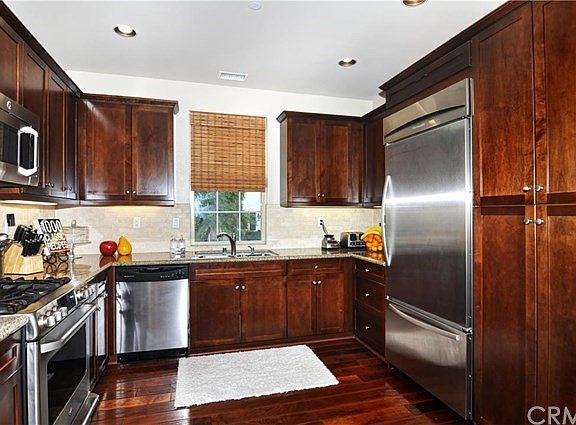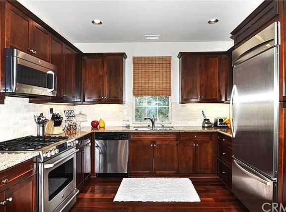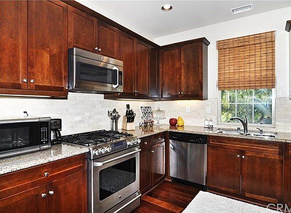 Light and Bright home in immaculate condition. Inviting Great Room with Fireplace, Hardwood Floors, Crown Molding and built ins through out. Desirable Main Floor Master Bedroom and 2 good sized bedrooms up with upgraded carpeting. The Delightful Kitchen features Granite Counters, Convenient Pull out Shelves, Stainless Appliances, 6 Burner Stove and Upgraded Real Wood Cabinets. The Great Room Boasts, Built in Book Shelves and a Built in Entertainment Center. Main Floor Master Bath details include Built in Closets, A Relaxing Soaking Tub and Separate shower enclosure. The Distinctive Sun Splashed Patio impresses with a Built in BBQ and Outdoor Fireplace, Rarely seen amenities at this price point. Enjoy Resort Style living in award winning Woodbury with 8 pools, Heated Spas, 4 lighted Tennis Courts, Tot Lots and Playgrounds, Picnic areas and gas BBQs, and Picturesque Jeffrey Open Space Trail. Walk to Prestigious Irvine Schools and local shopping at Woodbury Town Center. Minutes from World Class Shopping and Destination Entertainment.