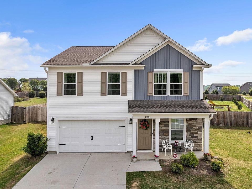 This beautiful, 5bd, 3ba, 2,321 sq ft. home sits on 1/2 acre corner lot and is located just 1 mile from downtown Fountain Inn. It is in a wonderful neighborhood with walking trails. This home is only 4 years old. The open concept, tasteful design and huge backyard make this property a perfect home in an amazingly convenient and desirable area with great schools. On the first floor there is a bedroom and full bath, which can be used as an office space, play room or in law suite. The kitchen flows into the living room with lots of space and a gas fire place. There is also a walk in pantry right off the kitchen as well. From there, the beautiful French doors open from the living room right outside to a covered back patio. The trees have been newly planted, five raised garden beds and the playground is only one year old. The drive way, porches, and house have also been professionally pressure washed. Also, the down spouts and storm drains have been added last year as well. From the living room you can walk into the garage or go up the stairs to showcase a huge playspace, rec room, or flex space for whatever fits your family best. There are four bedrooms upstairs, three of them share a spacious bathroom and the fourth which is the master has its own walk in closets and on suite bathroom with a garden tub, separate shower, and powder room. The laundry room is also located conveniently upstairs. Note: Appraised as 2,321 sq ft.