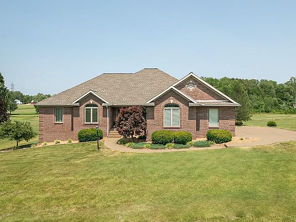 Welcome to this custom-built property nestled within the Quail Crossing Golf Community in Boonville, IN. As you approach this stunning home, you'll be captivated by its impeccable landscaping, charming brick exterior, and inviting covered front porch. The expansive driveway leads to the attached 3-car garage, providing ample space for parking and storage. When you step inside, you will be greeted with the foyer entry. To the left, you'll find the perfect office space boasting large windows, vaulted ceiling, laminate flooring, storage closet, and a ceiling fan. To the right of the foyer, the formal dining room beckons with its large windows, beautiful double tray ceiling adorned with a sparkling chandelier, and stylish wainscoting. Straight ahead from the foyer is the spacious living room, where comfort and warmth abound. The gas fireplace is perfect for cozy nights in. Adjacent to the living room is the eat-in kitchen featuring a generous breakfast bar, stainless steel appliances, Corian countertops, and custom cabinetry. The primary bedroom boasts a tray ceiling, ceiling fan, walk-in closet, and a luxurious en-suite bathroom. Indulge in the privacy and convenience of direct access to the covered back porch from the primary bedroom. The en-suite bathroom is adorned with a twin sink vanity and a tiled shower, providing a spa-like experience. Conveniently located off the walk-in closet is the laundry room, ensuring ease and efficiency in handling laundry chores. A half bathroom for guests is also near the laundry room. The two additional spacious bedrooms are beautifully appointed with plush carpeting, large windows that let in abundant natural light, and they share a Jack and Jill bathroom with a shower tub combo. The perfect setup for comfort and convenience. Completing the interior of this remarkable home is a versatile bonus room upstairs, providing endless possibilities. Outdoor living is a delight with the main access to the covered back patio through the kitchen. Revel in the beautiful views of the golf course while enjoying the serenity of your surroundings. For added convenience, a portion of the backyard is fully fenced. On the back side of the home, access to the walkable crawlspace presents opportunities for additional storage. This extraordinary property within the Quail Crossing Golf Community offers an exceptional lifestyle and an abundance of amenities. Don't miss the chance to make this your dream home.