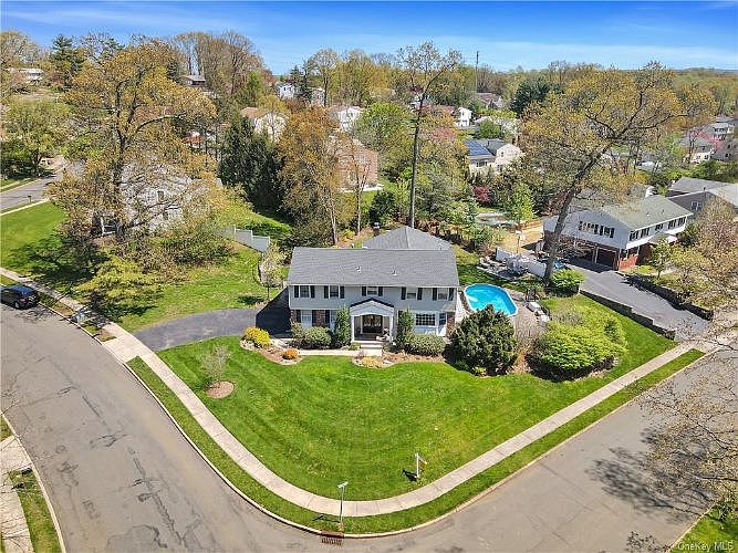 Who says you can't have it all? Located in the highly sought-after Betsy Ross neighborhood, this impeccably maintained home on a corner lot instantly charms with its curb appeal complemented by its professionally landscaped yard, manicured garden and inviting walkway leading to the front door. Pride of ownership is immediately evident when you first walk through the foyer. To the right, you will find the formal dining room featuring a large bay window and tasteful crown molding. The dining room flows seamlessly into an updated, eat-in kitchen that boasts granite countertops, stainless steel appliances, custom cabinets, and an exterior door leading to a back porch. Next, you are met with the first of three living family rooms- offering a wood-burning fireplace and a sliding door leading to the backyard. The second floor features an additional living room with hardwood flooring, cathedral ceilings, and ample natural light. The third level contains four spacious bedrooms and a home office (or can be used as the 5th bedroom). The Master bedroom has a walk-in closet and a full, updated bathroom. The additional full bathroom upstairs is also updated. You'll love watching movies in the 3rd family room downstairs, with its cinema theme accents. If 3000+ sq ft wasn't enough, you also have a large, unfinished basement with endless potential. Bonus features include new hot water heater, boiler, water softener, 200 amp service, 2018 roof, and 2 car attached garage. No need to plan a vacation when the vacation is right here in your backyard. Immaculate attention to detail was put forth in designing this serenity. Strategic landscaping allows for both privacy and seclusion. A semi-inground pool and stone patio completes this oasis. Quiet street yet close to shops, parks, and the Blue Hill golf course. Perfect for the commuter as you are only 15 miles away from the George Washinghington bridge and easy access to public transportation via bus or train. Located in the award-winning Pearl River school district. Don't wait- this home won't last!