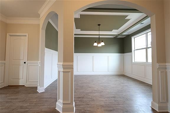 The Tupelo by Nason Homes is a home plan designed with the family in mind. This home features two huge guest bedrooms, perfect for teens, an extra guest bedroom for the youngest, and great sized owner's suite featuring vaulted ceilings, dual vanities, separate garden soaking tub and shower, and a closet fit for a queen! Not only that, the guest bathroom has dual vanities with an abundance of storage for all of the kids or guests. With all of the bedrooms upstairs, downstairs upon entry you will find a grand foyer accented by crown moulding, wainscoting and an immaculate dining room with coffer ceilings, crown moulding, and an ornate chair rail that set a tone of elegance for the rest of the home. As you make your way through the foyer, you will then be greeted by the spacious family room that also features coffer ceilings and crown moulding. The Family Room then opens up to the incredible kitchen with storage and large families in mind. The Kitchen features a huge pantry with a ton of cabinet and counter-top space. From the kitchen you can walk outside on to your covered back porch and enjoy a night of entertainment or relaxation. Come see why families all over Murfreesboro have chosen to call the Tupelo their new home.