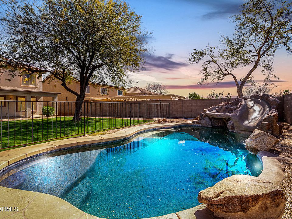 Welcome Home! This meticulously maintained property offers a perfect blend of modern comforts and energy efficiency, making it an ideal choice for your next home. Situated on a generous lot, the home features a sparkling pool with built in waterslide rock feature, fully paid-off solar panels, outdoor kitchen, and ample space for entertaining or relaxing under a beautiful Arizona sunset.The prime location puts you right in the heart of a growing neighborhood, with easy access to shopping, dining, medical facilities, and major freeways, offering both convenience and tranquility. With an A-rated high school and a post-secondary campus nearby, opportunities are endless here. Put this on your must-see list before its gone!