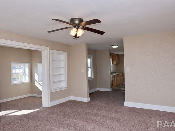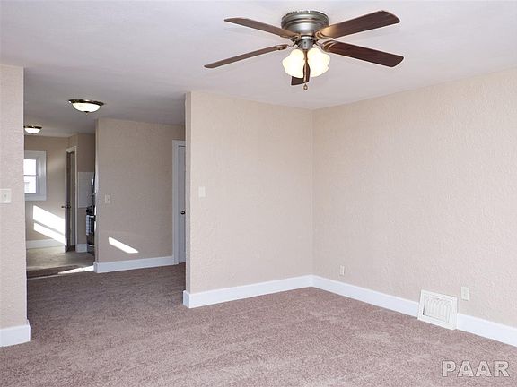 Come see this charming move in ready home in Pekin. This home offers 2 bedrooms (potential for 3rd in basement) Kitchen with new cabinets, counter top, flooring & appliances, Remodeled Bathroom, Living room with built-ins and attached sitting area. New flooring & paint throughout the home. New Furnace, A/C & Hot water heater. 2 stall detached garage on a nice corner lot. A great starter home and a must see!