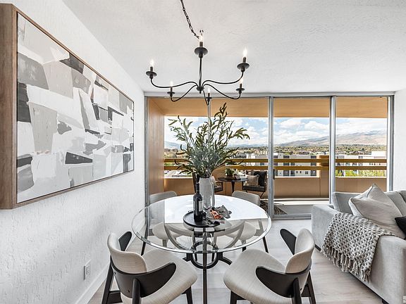 Step into luxury as you enter Arlington Towers Unit 6G. This unit has been thoughtfully remodeled highlighting the breathtaking views of the Sierra Nevada Mountains and Truckee River. The floor plan has been opened up making an open floorplan boasting natural light throughout. Living in Arlington Towers immerses you right into Downtown without any obstructions to your view. Come check it out today!, Remodel finishes include new kitchen, refrigerator installed June of 2025, quartz countertops, luxury vinyl plank flooring with liquid leveler application prior to install, removal of all popcorn ceilings throughout, beautiful spa like shower in the main bathroom with new sinks and hardware in both bathrooms, fresh paint and new appliances. On the fourth floor you will find a gym overlooking the beautiful river as well as the Laundry Facilities. There are multiple commercial washers and dryers and countertops for clothes in this beautiful laundry room. Additionally, the fourth floor is where the mailboxes will be found.