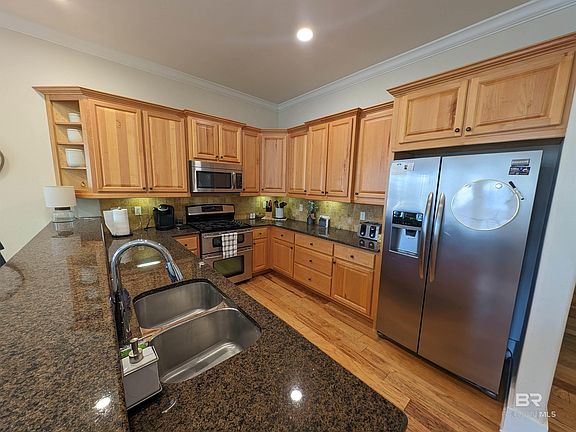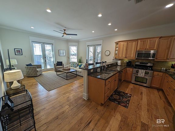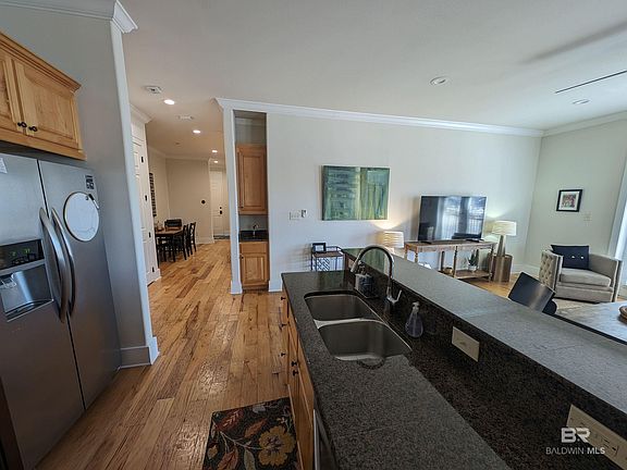 This downtown Fairhope condo is being offered fully furnished. This is an ACTIVE vacation rental on VRBO and managed by Wise Living. Turnkey ready with newly, updated primary bathroom. All furniture is in great shape and all linens, dishes, etc. to convey. Chefs kitchen with granite counters and stainless appliances. 9' ceilings throughout, hardwood flooring and tile. Some updates include Ozone air purifier installed in A/C, new ceiling fans and newer toilets. This building is a prime location in downtown with walkability to everything our gorgeous city has to offer in the way of shops and restaurants. It's a nice walk to the bay to catch our glorious sunsets or enjoy from this large wrap around balcony that faces west. This building has a parking garage and comes with a dedicated space. Elevator in the building for convenience. These are single floor condos and this unit is located on the 2nd floor. Highly secured with coded entry into building.