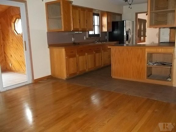 Hardwood floors, tray ceilings in kitchen & dining room with ceiling fans. Lots of nice cabinets & bar dividing dining room from kitchen. Stainless appliances Living room has cathedral ceiling/beams & sky lights + balcony alcove for interesting decorating options. Master bedroom with fully handicapped bathroom. Laundry is located in 2nd bathroom. There's an enclosed front porch + a small sun room. The one car garage has plenty of extra space (this owner had a hot tub)& an enclosed area suitable for small office. 2nd bedroom has extra heat/cooling unit. Basement is suitable to finish. There's a bar and cabinets for serving area. There's a shower & toilet in the basement. Basement could be finished. In addition to the attached garage, there's a single car detached garage with concrete floor & a detached garage with gravel floor. Two sides of yard are fenced with chain link. Make your appointment today so you don't miss out on this home