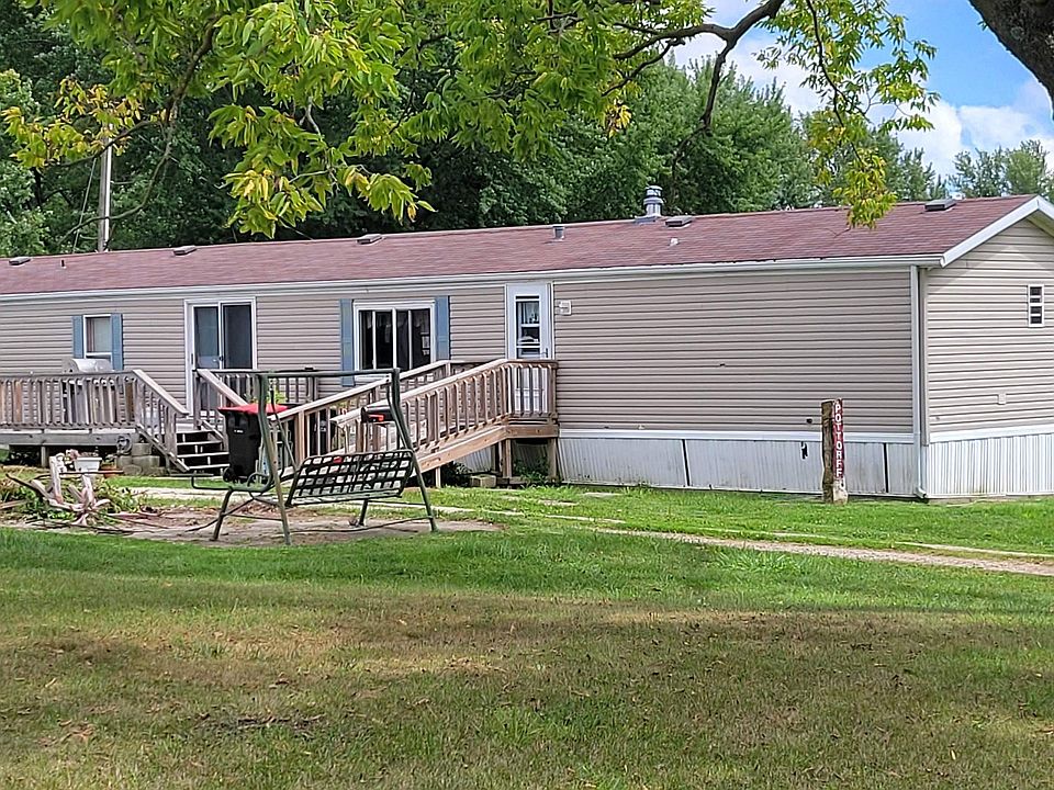 Manufactured home, 16 ft. x 80 ft., in very good condition located on one half acre lot very close to Mount Ayr elementary and high schools, football and baseball fields, track events and playgrounds. Master suite has walk-in closet, unique bonus wardrobe, private bath with corner garden tub and stand-alone shower. Two guest bedrooms share an additional full bathroom. A large laundry room comes equipped with both washer and dryer. The kitchen is open to a large living room with double patio doors onto a wooden deck. A large over-sized garage will peak your interest with two stalls on the west side and separate overhead doors AND an additional space for more car storage in the attached eastern addition which has its own set of doors for maximum convenience.