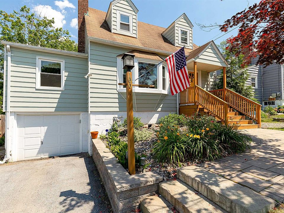 Adorable Cape Cod in very convenient location. Nice curb appeal with pretty landscaping, new siding (3 years), updated front porch and retaining wall (5 years). The entry foyer will greet you and lead you to the bright living room with a cozy, wood burning fireplace. Spacious dining room is open to the kitchen with gas stove and pantry closet for storage. Useful first floor den/family room could double as an office or guest space. Beautiful hardwood floors throughout (refinished 4 years ago) and bedrooms with nice storage space. Interesting and charming details such as glass doorknobs and milkman's door. Backyard is lovely and will become a favorite space to relax or entertain. Garage workbench will convey. Additional updates include first floor replacement windows and garage door. A special home to call your own!