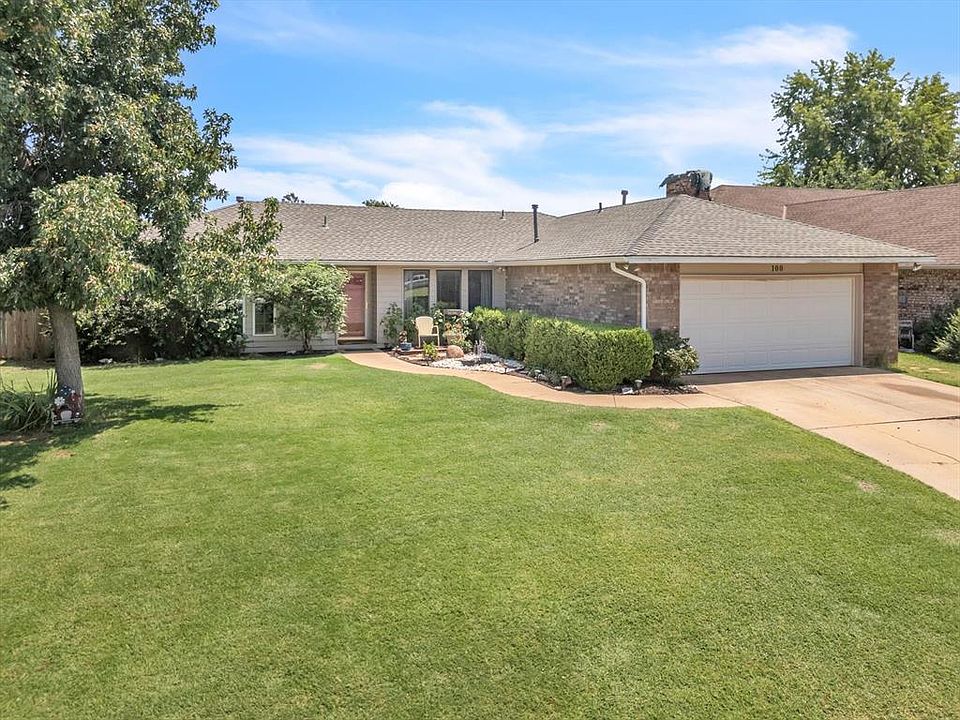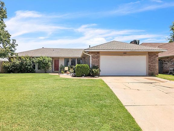 Welcome to 100 N Grand Fork Dr! This is a 3 bedroom/2 bathroom home located in the Edmond North HS district. New paint throughout living areas, vinyl wood flooring, new cover for gazebo, roof is 2 years old. Garage has been converted to a flex room and office space with an AC unit that can stay with the home. Seller is willing to leave the converted rooms as is or tear them out so new owner can use full garage. Pool is in great shape and all the pool equipment will stay with the home. Outdoor play set, basketball goal and kitchen refrigerator will also stay.