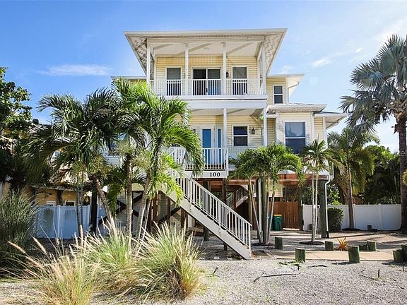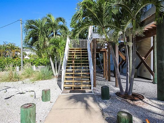 PALM ISLAND COASTAL PARADISE WITH DEEP WATER DOCKAGE, PRIVATE POOL & GULF VIEWS. Built in 2007 and constructed to current hurricane codes, this 4 bedroom, 3 bath home truly has it all...an open & comfortable floor plan with high ceilings, custom finishes, an elevator shaft and a kitchen that boasts a walk-in pantry, granite counters & wood cabinets. The living room opens to a large screened lanai where you can let nature in on cooler days or watch the kids play in the pool below. Upstairs, the Master Suite offers views galore and multiple porches to enjoy...one on the Gulf side where you can be dazzled with spectacular sunsets and the other large, screened lanai on the canal side which has a wet bar and total privacy. The outdoor living & entertaining space leaves nothing to be desired...You will appreciate the large, fenced yard set in a lush, tropical setting, outdoor shower, golf cart garage & tons of storage. Relax by the heated & private pool, perfect for dipping after a fun day at the beach collecting treasures or a day on the boat fishing the waterways for dinner. The 30' dock includes a platform for kayaks/paddles boards, a fish cleaning station and has pilings set for a lift. This home also has excellent investment potential. Palm Island offers a unique lifestyle designed to unwind & recharge but still affords all the modern conveniences we've come to expect.
