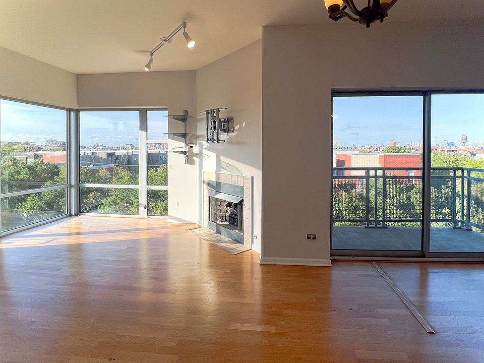 Beautiful 2-bed, 2-bath corner unit with bright north and west views. Features abundant natural light, an open layout with a gas fireplace, private north-facing balcony, spacious west facing bedrooms, master bath with soaking tub, in-unit laundry, and a storage locker. Prime location near the West Loop, United Center, public transit, and Union Park. Garage parking included.