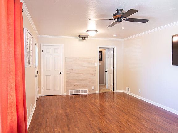 Gorgeous remodeled, well cared for, East side home. Tucked against Cedar Mountain and just a block from the Canyon Park. Beautiful hardwood floors, huge rooms, original built in drawers and cupboards. Sunny kitchen with tile back splash, family room could be made into 3rd bedroom. 6 mature trees - 2 of which are peach trees and 1 apple tree with fenced yard. Garage has storage room, storage shed and much more!