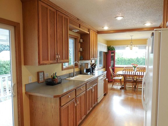 Daylight rambler on horse property acre w/ 3 bedrooms on the main, including the master, w/ another bathroom; updates throughout ~ double-pane vinyl windows & kitchen slider entrance, new HVAC July of 2014; full basement w/ separate entrance, 1 bedroom, 3/4 bath, living room w/ fireplace, additional room, large new laundry / counter-work-storage area. Irrigated property / pasture; outbuildings for animals & equipment. Two car attached garage, RV & abundant off-street parking, circular driveway.