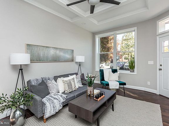 NEW RENOVATION W/ NEARLY 2000 SQ FT OF LIVING SPACE JUST STEPS FROM PATTERSON PARK - this massive light filled end of group renovation features an open floor plan with 4 bedrooms and 3 baths all above grade! Attention to detail with coffered ceilings, large island kitchen w/ quartz counter tops, tile backsplash and hardwood floors throughout main level. Upper level offers an abundance of space and hallway access to roof top deck great for entertaining - full unfinished basement is great for storage or opportunity to add additional living space!