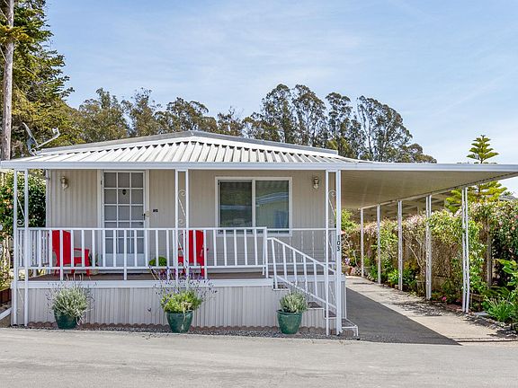 Rare find! Quiet, sunny, private setting on a short street with no through traffic. Enjoy the solitude with no rear neighbors, a privacy hedge and landscaped yard. There are views of the pasture and trees in the distance. Just three homes from the back of the park, a very desirable, sought after location. Relax in the community pool while enjoying the Soquel sunshine. A prize Colorado Blue Spruce, two fig trees, a lemon tree, several Hydrangeas and a vine covered lattice fence create the inviting side and back yard. The front deck is perfect for afternoon visits with neighbors. The home is neat as a pin. The well designed floor plan has two master suites, a spacious kitchen and extra storage space with a pantry, and several built in storage areas. The dining area can accommodate a large table. Lovingly maintained with new windows, roof, bracing and extensive repairs in 2009 to keep it in ship shape. Backyard shed! Space rent is 516.93. Age restriction 55+.Check out the video.