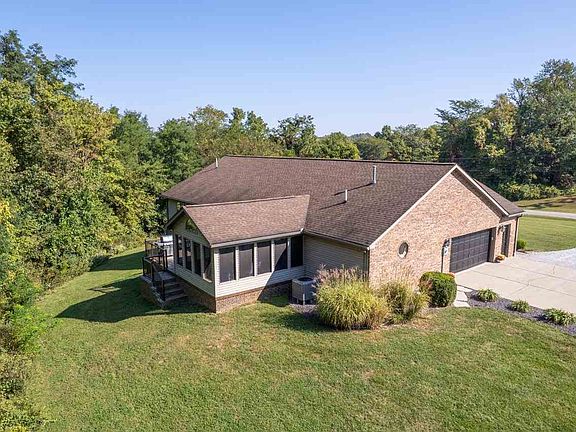 Nestled amidst the serene woods, this ranch-style home offers a tranquil escape. The covered front porch invites you to savor nature's beauty. Inside, the vaulted ceilings adorned with exquisite wood details and rustic beams create an inviting ambiance. The open-concept kitchen, dining, and living room are perfect for gatherings. The split floor plan ensures privacy, with an oversized master bedroom boasting a walk-in closet, en-suite bathroom, and a screened porch for morning coffee and stargazing. Two additional bedrooms feature newer carpets and spacious double closets. A full bath is conveniently located between these rooms, while an expansive laundry room adds convenience to your daily routine. The full walkout basement is an entertainer's paradise, offering an oversized family room and bar area. With a walk-out option, this space seamlessly connects to the outdoors, making it perfect for gatherings. Unfinished storage offers an added bonus. Privacy & convenience are found here!