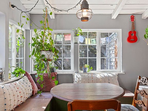 This charming beach cottage is nestled among mature trees and native plants, just a half-block from the sandy beach. Inside, the circular floor plan flows beautifully, with beamed ceilings and French doors leading to a cozy bedroom. A propane stove keeps things warm and inviting, perfect after a day spent exploring the coast. You can rinse off in the outdoor shower, or unwind with a soak in the indoor tub.