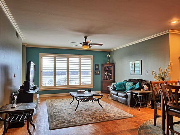 Unit 303. Does the prospect of downsizing and moving seem attractive? Want to simplify life? Enjoy carefree condominium living with gorgeous river views in this 2 bedroom, 2 full bath 1500+ sq foot third floor unit. The new and growing downtown scene is part of your neighborhood, where events at the Ford Center, Victory Theatre, and ONB Events Plaza, along with the Farmers Market and many choices of dining are all a part of your experience. Watch Downtown happenings from your windows or balcony, including the fireworks and sunsets. No need to drive, there is so much happening close by. When it's time to drive, it's only 10 minutes to anywhere. Open Living Room and Dining Room, a Kitchen plus dinette, a Laundry Room, guest bed and bath, Master Suite with dual vanity, and a private outdoor balcony with river view complete the floor plan. Built-in bookcases in second bedroom. Laundry Room with built-in ironing board. Lots of storage, plus an additional storage area is located on the same floor, and in the basement garage. One indoor and one outdoor reserved parking space with the building. The Riverfront Condo building is a great community and has security features, a Party Room, and a community pool. Condo fees cover water, trash, basic phone, basic WOW cable (owners can purchase expanded cable features), and common area expenses.