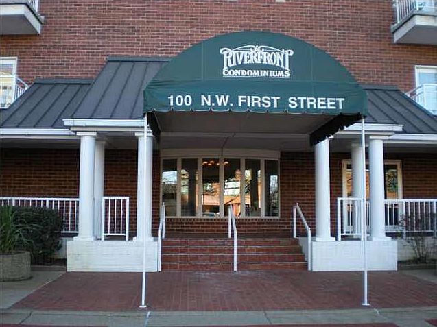 Movin' on up!! Downtown living at its finest. Live and entertain with magnificent views over the mighty Ohio. This 4th floor condo provides a fabulous floor plan offering sweeping panoramic river views from the living area and master bedroom. Your private balcony is perfect for toasting to a great lifestyle. Both bedrooms are generous in size. Tons of storage. Elevator from your underground parking spot to the 4th floor. Tenant is responsible for utilities. 12 month lease with credit/ background check. No smoking. No pets.