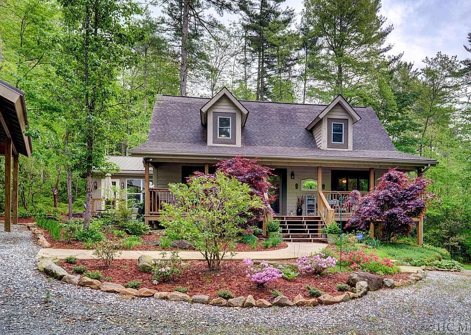 Are you looking for a secluded mountain cabin in the heart of Cashiers? You got it in this fully renovated home within walking distance to the Crossroads. The three bedroom two bath plus a loft on almost an acre lot with complete privacy. Located at the end of the street and bordered by a spring. The $150,000 renovations in 2017 include hardwood floors, stone fireplace with gas logs, french doors lead out to the glassed in sun room, updated master bath with new tile and granite countertops. Security system, whole house filtration system included. The open fully equipped kitchen has granite countertops, new cabinets and stain steel appliances. The mature rhododendron and mountain laurel trees can be enjoyed from the large covered front porch or the sun room. The two car carport and manicured lawn is another plus. Plenty of room for a fire pit beside the raised garden. Unfinished basement can easily be finished for a large game room and workshop with inside stairs or exterior door to garden. This is the ideal mountain cabin with great accessibility to the Cashiers lifestyle. You must see this hidden gem!