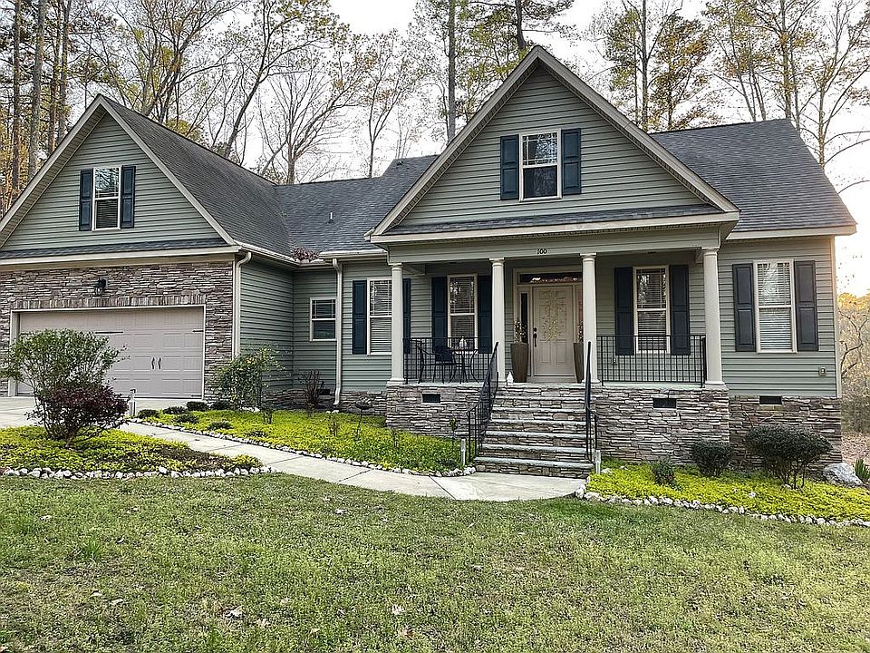 Located in the gated community of Carolina Trace, this remarkable 1 1/2 story home is situated on a large lot on a quiet street in gated community at Carolina Trace. Open concept kitchen/living area. Master Bedroom/Bath downstairs along with 2 other bedrooms. Both full baths have double vanities. Finished bonus room upstairs with half bath, great place for 4th bedroom. 2 large attic spaces that can easily be finished into a bedroom if desired. Wooded area all around home. Screened in porch with deck. Basement large enough for golfcart/storage.