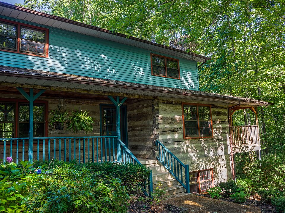 Classic log home nestled on a private 8 acres with a meandering creek . The park-like setting is located just minutes from dining & shopping in an exclusive neighborhood. An expansive 3528+square foot home sets tucked away among the tremendous hardwoods with a bubbling creek flowing as one of your boundaries. The upstairs is complete with two Master Suites which offer fabulous privacy for either the relative or the teenage hangout. An additional bathroom could be added as all the plumbing and framing is complete. Two additional bedrooms with ample closet space complete the house with a total of 4 bedrooms. Loads of living space with a large eat-in kitchen complete with brick wood burning fireplace - imagine the rocking chair pulled up by the hearth and the crackling fire. Enjoy the covered front or side porch and a gorgeous back deck just off the kitchen providing so many places to curl up with a book. Need some more space - a finished basement is complete with a full bathroom and an perfect place for those inside activities....movie room, pool table or just the hangout to be created by YOU. Venture outside of this gorgeous home ...The BARN is not your typical barn but a fabulous place to HOST the EVENT of the year for family and friends. Complete with water, electricity and propane this is the place to be. Loads of parking or great place to throw the football with the kids. "Rainbird" irrigation keeps the area with adequate watering to promote the beautiful green grass. I promise you will never need to leave this property.