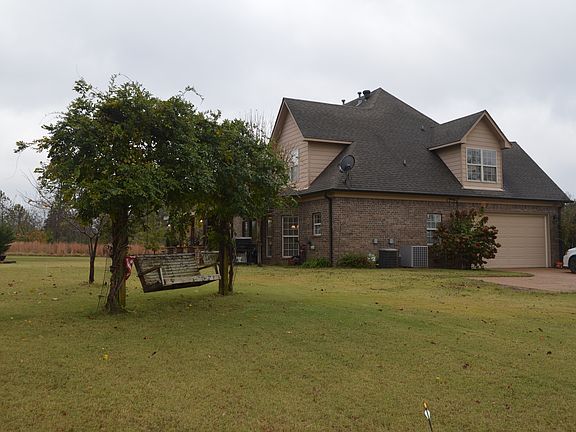 This was a builders personal custom home, situated on appx 2 acres. Well kept all brick home in like-new condition. Only 10 years old with beautiful, well established landscaping. The home features 3 large bedrooms, 2.5 bathrooms, sprinkler system, security system, upgraded cabinetry, and upgraded closet shelving. The entry has wood floors, wrought iron stair railing, and arched doorway leading to the formal dining room. Vaulted great room with built-in bookshelves, gas log fireplace with TV nook and recessed lighting. Great room has archway from great room to the large eat-in kitchen. Kitchen features smooth cook top stove, recessed lighting, pantry and custom ceramic tile floors. The master suite features double tray ceiling, sitting area and salon master bath with double vanity, beveled glass mirrors and walk-in closet. Upstairs contains 2 additional bedrooms (one with adjoining full bath) and game room. Double side load garage, gutters, washed rock patio, smooth ceilings throughout and plantation blinds throughout. Outdoor features a stone finished patio with wood burning fireplace and tv hook up for lots of outdoor entertainment. Area is a gorgeous park-like subdivision with large lots, several lakes where wildlife still abounds. Only 2.5 miles from I-55. contact Matt Clark