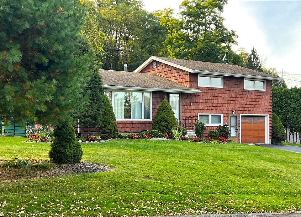 NESTLED ON APPROX A HALF ACRE OF PRIVACY ON A CUL DE SAC NO LESS!!! THIS HOME IS SPOTLESS AND WAITING FOR NEW OWNERS TO MAKE IT THEIR OWN! 1ST FLOOR DEN WITH HALF BATH AND ENORMOUS STORAGE CLOSET, FINISHED LOWER LEVEL WITH DRY BAR, MAIN FLOOR LARGE LIVINGROOM AND FORMAL DINING WITH SLIDER TO FENCED IN YARD. EAT IN KITCHEN WITH MANY CABINETS AND COUNTER SPACE GALORE. (DISHWASHER DOES NOT WORK) UPSTAIRS 3 GENEROUS BEDROOMS, GENEROUS CLOSETS AND FULL "RETRO" BATH! THIS HOME FEATURES SOLVAY ELECTRIC, CLOSE TO PARK, WALK TO SHOPPING IF YOU WANT! IT'S ALL READY AND WAITING FOR YOU!*****