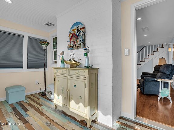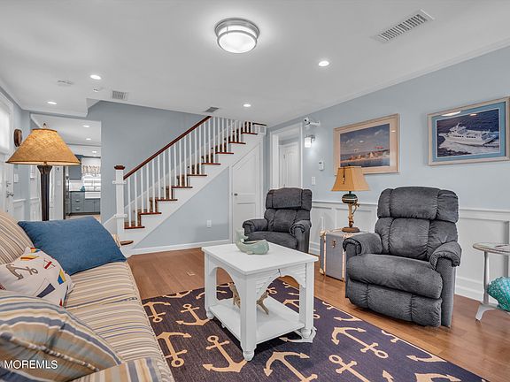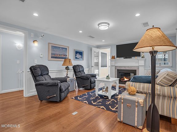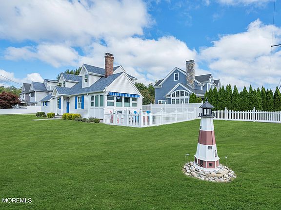 For centuries lighthouses have been a beacon of light to guide you to your home and bring shelter and comfort. Perched on the front lawn of 100 Ocean Avenue, this enchanting cottage has its very own lighthouse just waiting to welcome you. With views of the river this home embraces the quintessential New England cape style, offering an all-white exterior enhanced by coastal blue shutters, green lawns and the must have white picket fence. This is the beach house that is perfect for the seashore escape and no matter, the season, you will feel like you are on vacation every day. The stunning kitchen is a chef's dream with state of the art appliances, subway tile backsplash, quartz counters and breakfast nook. Completing the main level is a cozy great room, two bedrooms, a full bath and an all season porch, perfect for a home office. The second level belongs to the primary suite, hosting a sitting area and HIS & HER baths, hers includes a Robern vanity. Every bath is a jewel unto its own, with a decorator touch, beautiful tile and glass accents. The direct entry garage has epoxy floors and plenty of room to keep the home clutter free. With Manasquan beaches minutes away, and waterfront restaurants and marinas right around the corner, this is the home you have been waiting for.