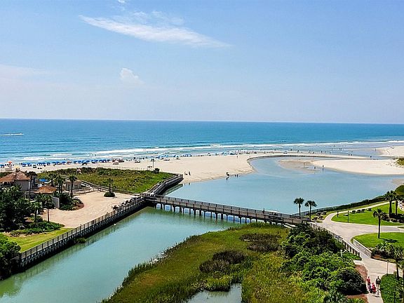 Wonderful views of the ocean, coastline, beach, Beach Club, saltwater creek from the expansive balcony and interiors. Extensive renovations have been made in recent years, including LVP flooring. The kitchen and baths were very tastefully finished with granite counters, stainless appliances and modern fixtures. Most of the furniture and décor conveys. Ocean Creek has 57-acres of park-like grounds. 24-hour gated security, tennis center, pickleball court, putting green, multiple outdoor pools, and an indoor pool with whirlpool. The community boasts a wonderful oceanfront beach club with a snack bar and grill open in season, sand volleyball court, outdoor pool, playground, lockers, and restrooms. Building insurance is assessed annually. Property is a vacation rental. All figs. & sq. ft. approximate.