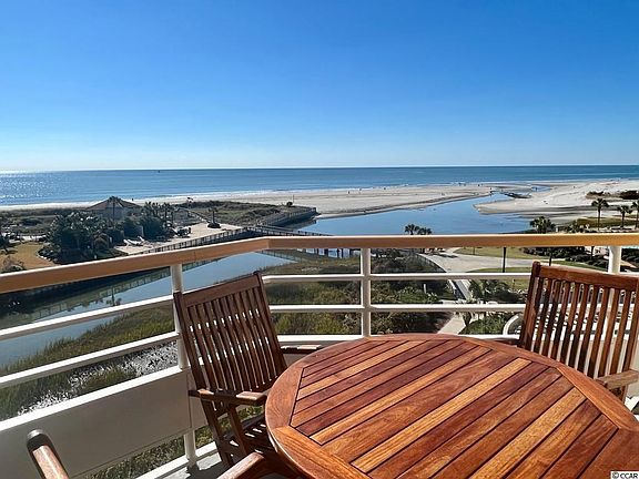 Life is more beautiful when it’s lived oceanfront in this stunning condominium retreat located in the North Tower at Ocean Creek. Your generous balcony overlooks the ocean, beach club, creek, and green areas and is accessed from both the main gathering room and the primary bedroom suite for maximum comfort and convenience. Design details within reflect the colors of sand, sea and sky, blending all into a cohesive, sophisticated space. Offered fully furnished, it features wood laminate flooring and updated fixtures and finishes throughout. Gorgeous kitchen includes custom cabinetry, granite countertops, tile backsplash, oversized passthrough and bar for buffet service. Spectacular dining area takes full advantage of that panoramic ocean view, offering an ideal setting for elegant entertaining. Spacious primary suite features en suite vanity room with dual sinks and seated vanitiy, separate room with tub and shower. Second bath includes step-in shower. Ocean Creek’s Tower North is situated directly in front of a saltwater creek and is conveniently located near the beachfront outdoor pool. The “E” stack unit arguably has the best views and largest balcony facing the ocean in Tower North. Being on the fifth floor makes this a perfect height to take in the beauty of the grounds, pools, beach and creek below, the dunes on the beach, and expansive ocean filled views all the way down the coastline. Ocean Creek is one of the only gated beach front communities on the grand strand. It’s conveniently located across the street from Barefoot Landing yet this 57 acre resort draped by the canopies of Live Oak trees is tucked away our of sight making this Myrtle Beach’s best kept secret. Within the resort, take the tram to the tennis courts or putting greens or head out for a day of shopping, dining, or to play a round at one of the area’s 90 golf courses. Whether this becomes your primary home or your wintertime getaway, you’ll find everything you’ve been dreaming of here.
