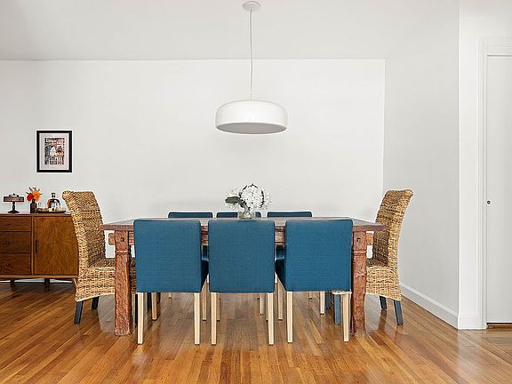 This home is move-in ready—no renovations needed.Throughout the apartment, find stunning hardwood floors, 10 spacious closets (some double), and 9 windows (at least one in each room) that capture sunlight throughout the day. Facing the rear of the building, the apartment provides several hours of light exposure.