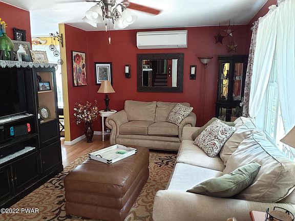 Move in ready, split level with 3 bedrooms and 2 baths. Mini -split AC with heat pump and new dishwasher and refrigerator. A back deck with canopy for quite evenings. This is a well kept home with privacy and rights to a private lake. It is close to Woodloch Pines and Lake Wallenpaupack for year round fun., Beds Description: 2+BED 2nd, Baths: 2 Bath Lev 2
