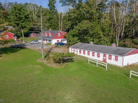 Situated on a level 2.57 acre lot in close proximity to Flemington Boro. Custom home features an open floor plan, kitchen with breakfast bar that opens to the living/dining room with fireplace. Den/office, 2 bedrooms & full bath complete the main level. 2nd floor features a master suite with double closet, full bath with shower & walk-in attic space for storage. Fourth bedroom and main bath complete the 2nd floor. Inside entry to basement with utility room and laundry hook up. Large detached 2-car garage with finished space above. Attached to the garage is 2 story finished space that could be detached office or in-law space. Detached 1,800 square foot masonry barn (previously used for horses). Main house is solid but needs updating. Price reflects condition. SOLD AS IS.