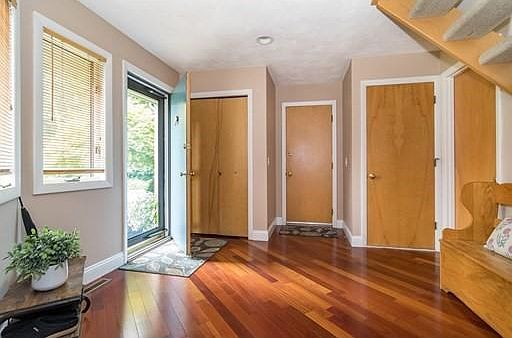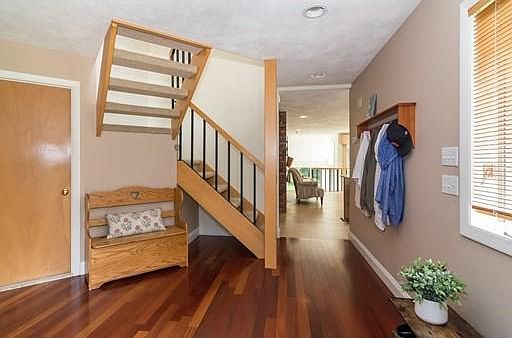 Beautiful Contemporary home in great neighborhood setting! Open floor plan features light cherry wood kitchen w/granite counters & large center island w/breakfast bar, open to dining room & family room w/center wood burning fireplace, playroom w/slider to yard, 1st floor laundry room, 1/2 bath & mudroom entry w/access to an oversized 2-car garage. Stairway w/rod iron balusters leads to the expansive 2nd floor that features 4 bedrooms & 3 FULL baths! Addition over garage has gorgeous suite w/vaulted ceilings, sky lights, walk-in closet with custom built-ins & gorgeous full bath w/tile shower, soaking tub & Corian counters. Bedroom #2 was the original main bedroom suite has an UPDATED Full bath w/tile floors & Corian counters. 2 additional good-sized bedroom & another UPDATED full bath! The lower level is finished w/a large bright game room & another full bath! Features include: young roof, hydro air heating & 3 zones of AC! Set back on private wooded lot, near highways, schools etc.