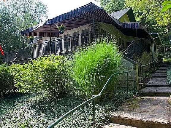 Nestled at the base of them mountains, tucked in a secluded treed setting grand stone fireplace with built in wrap around flag stone porch with awning random width pegged hardwood floors